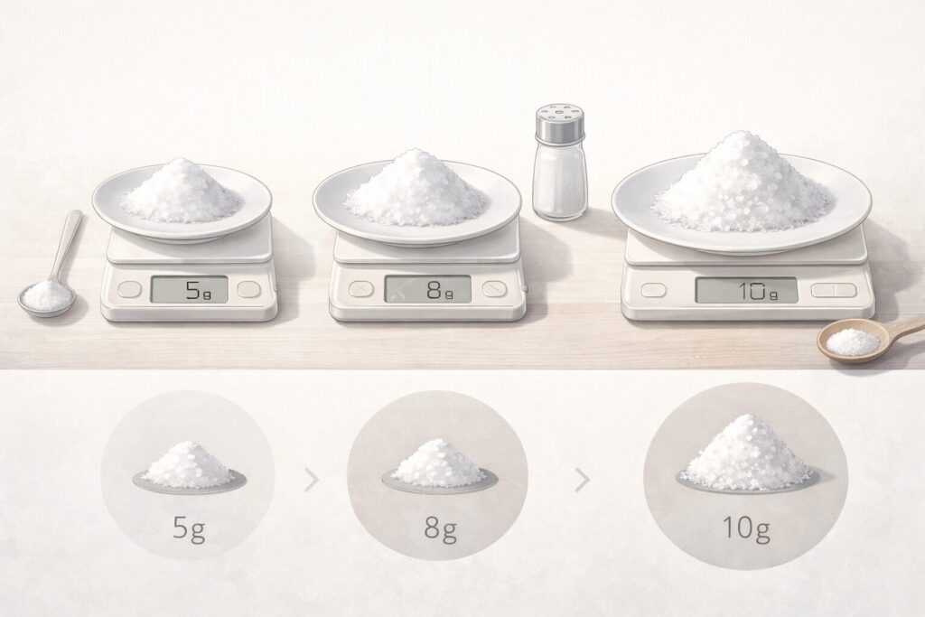 減塩はとても有効な健康習慣ですが、「やりすぎないこと」が大切なポイントです。次のパートでは、具体的にどれくらいの塩分量が適切なのか、1日の目安について詳しく見ていきましょう。