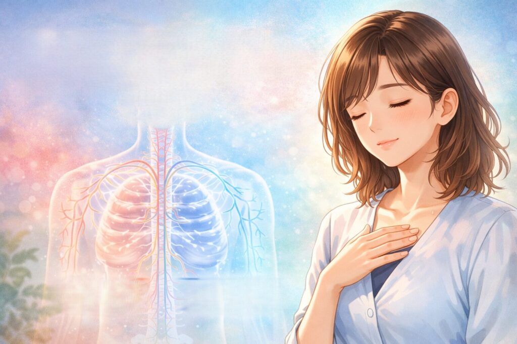 長く吐くことで副交感神経が働き、体が少しずつ落ち着きやすくなります。