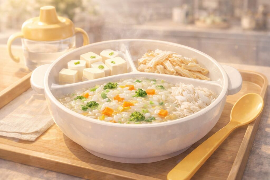 ◌ 水加減や軟飯への移行、野菜・タンパク質の取り入れ方など、段階に合わせた工夫が大切です