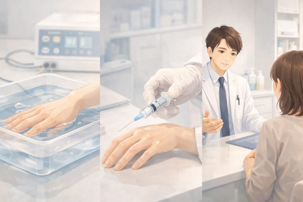 🔴 この記事では、皮膚科で処方される手汗の薬を中心に、外用薬から注射・手術・オンライン診療まで幅広い選択肢を整理しました。