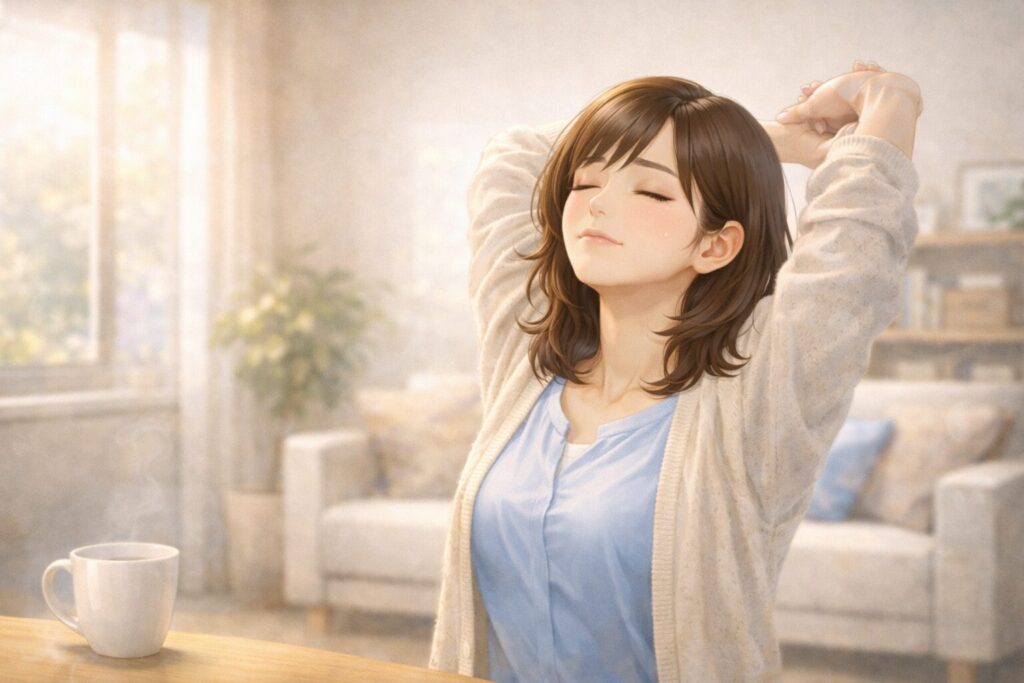 ・深呼吸や軽いストレッチで緊張をゆるめる