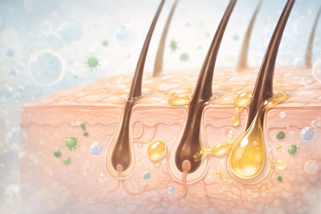 皮脂そのものは本来、頭皮を守る大切な役割を持っていますが、分泌量が多すぎるとトラブルの原因になりやすくなります。