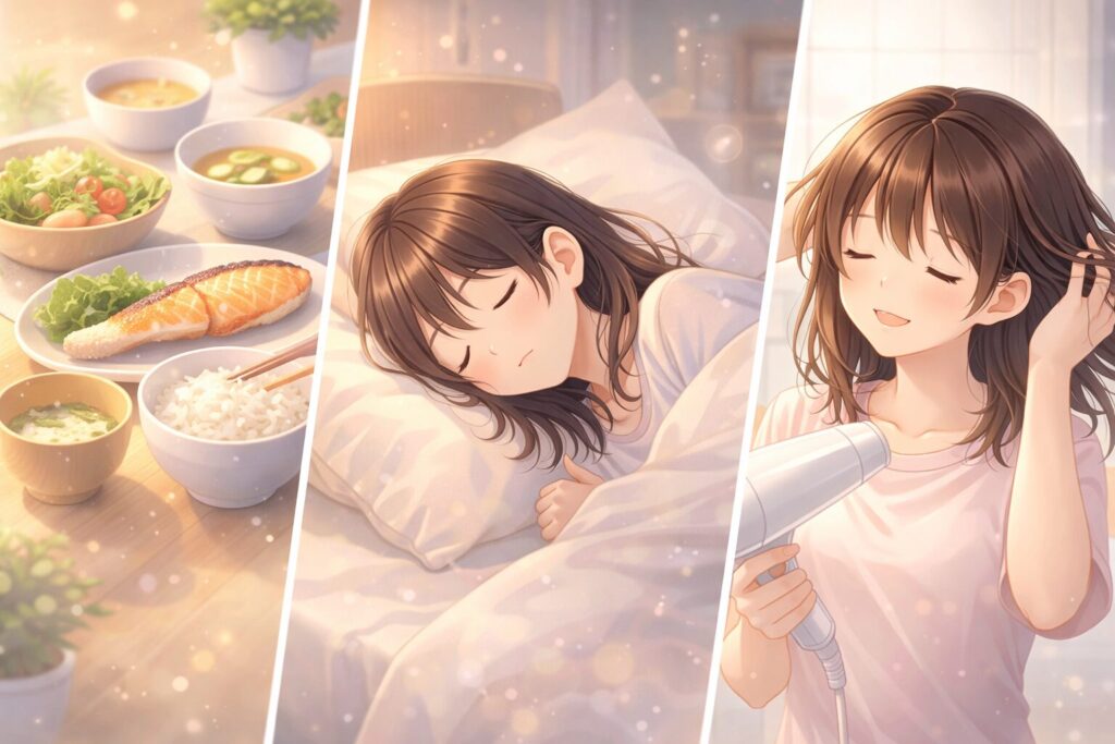 シャンプーだけに頼らず、あわせて見直したい生活習慣や頭皮ケアについてお話しします。