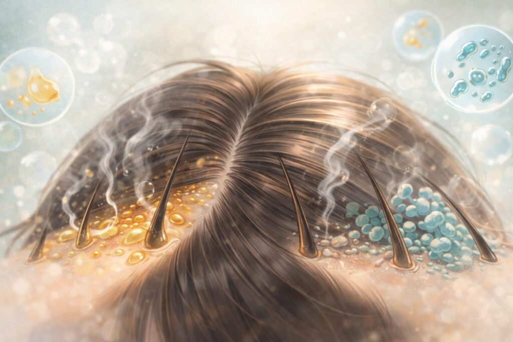◌ 頭皮のニオイは「不潔だから」ではなく、皮脂や常在菌、生活習慣のバランスの乱れが関係していることが多い悩みです。