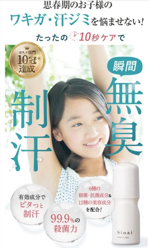 ✔ シナイは医薬部外品として制汗と殺菌の両面から設計されている