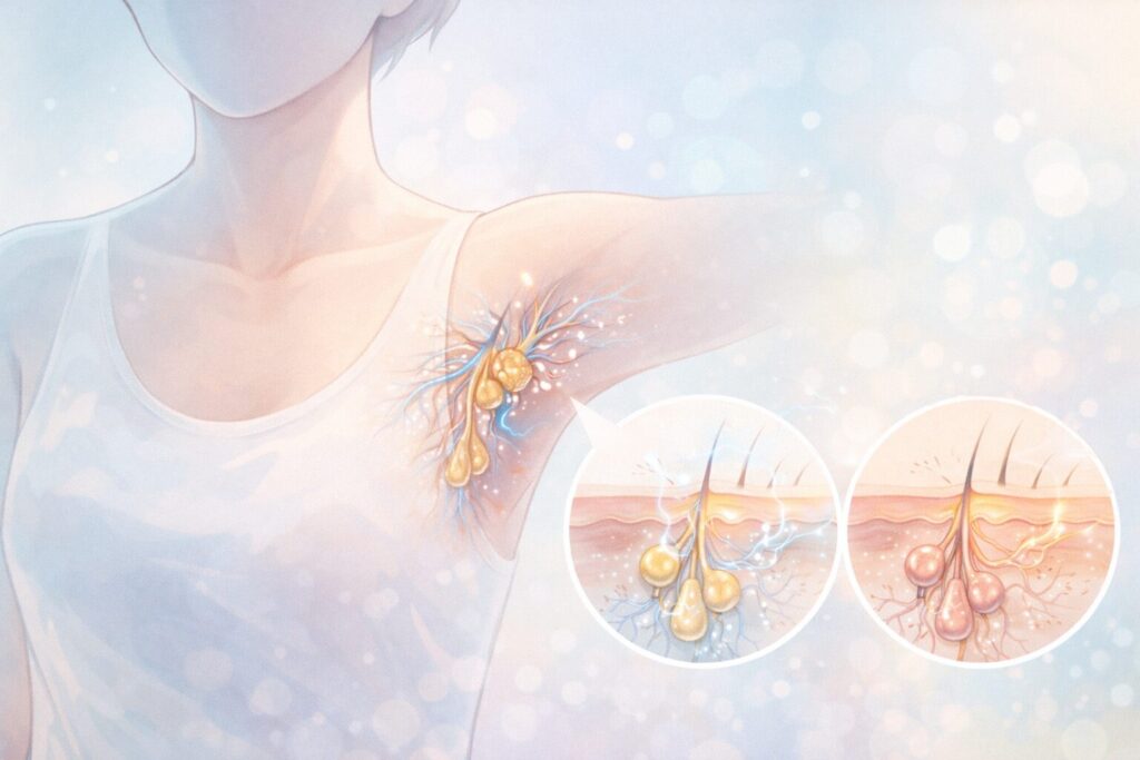 🔴 ワキガや多汗症の悩みは体質や生活背景が関係しており、「切らない治療」という選択肢があることを知るだけでも気持ちが楽になる方は少なくありません。
